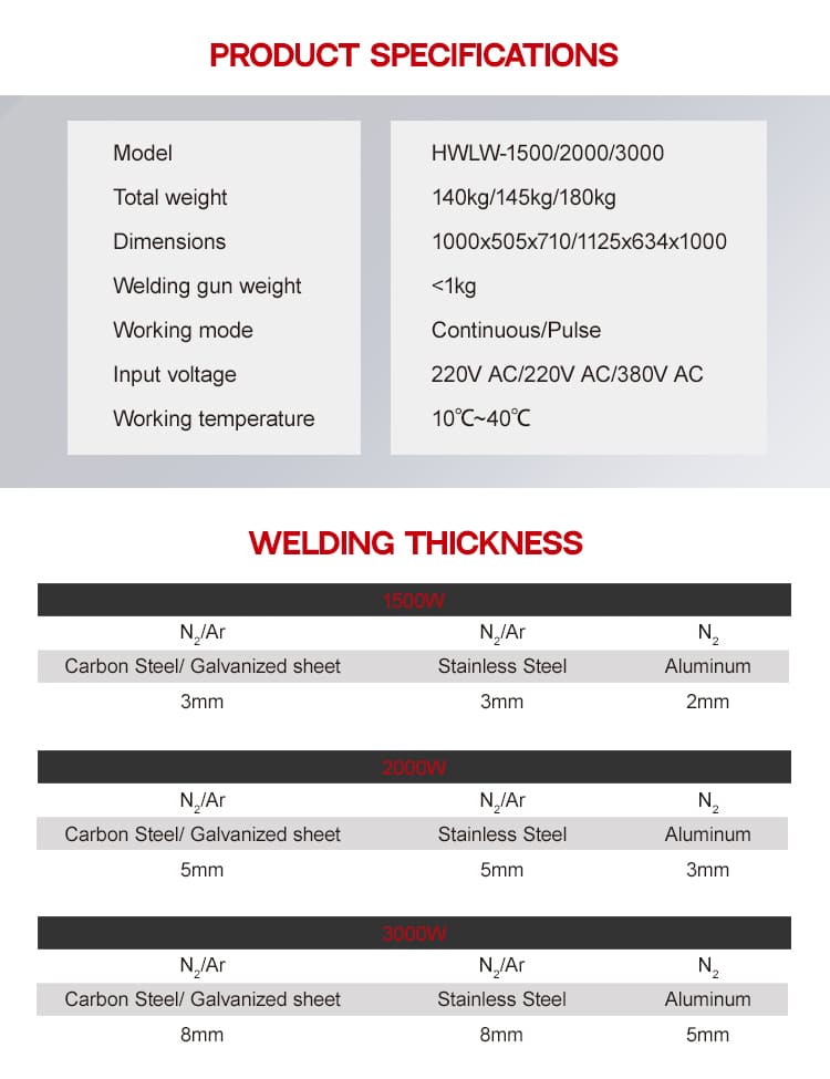 1) Bahan dan Ketebalan Kimpalan: Untuk memadankan kuasa penjana laser yang betul untuk anda.