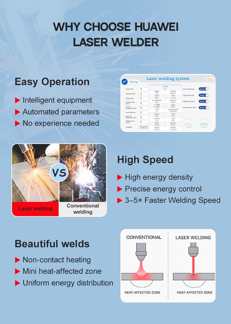 TheHuawei Laser 1500W 2000W 3000W Mesin kimpalan laser pegang tangan fleksibeladalah serba bolehMesin kimpalan laser genggamDireka untuk kimpalan logam yang lancar dan cekap merentasi pelbagai aplikasi. Huawei Laser 1500W 2000W 3000W Mesin kimpalan laser pegang tangan fleksibelMenyampaikan lipit kimpalan bersih, herotan haba yang rendah, dan output yang boleh dipercayai untuk fabrikasi, pembaikan, dan tugas pemasangan di tempat.