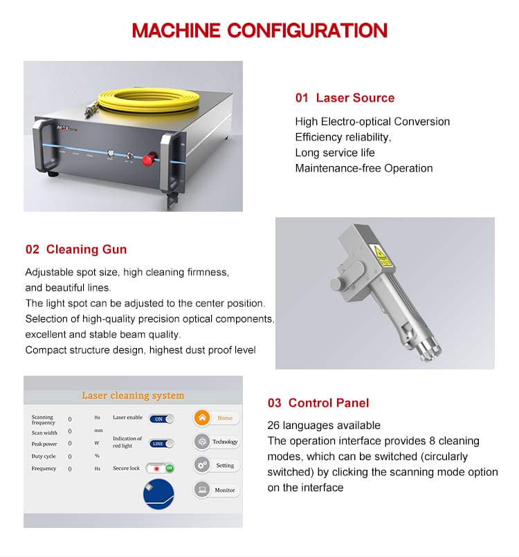 Sebagai mesin pembersih laser yang tidak hubungan, ia tidak merosakkan bahagian substrat, tiada penjimatan tenaga dan perlindungan alam sekitar, dan ia dapat menghapuskan resin, minyak, noda, kotoran/karat, pelapisan, pelapisan dan cat dari permukaan kerja untuk memenuhi keperluan pemodelan yang kompleks dan pemprosesan yang lebih tinggi,
